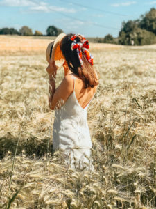 No need to spend hours  at the hairdresser, a simple bow scrunchie and you will be elegant where ever you go, and it will give a special touch to your outfit.