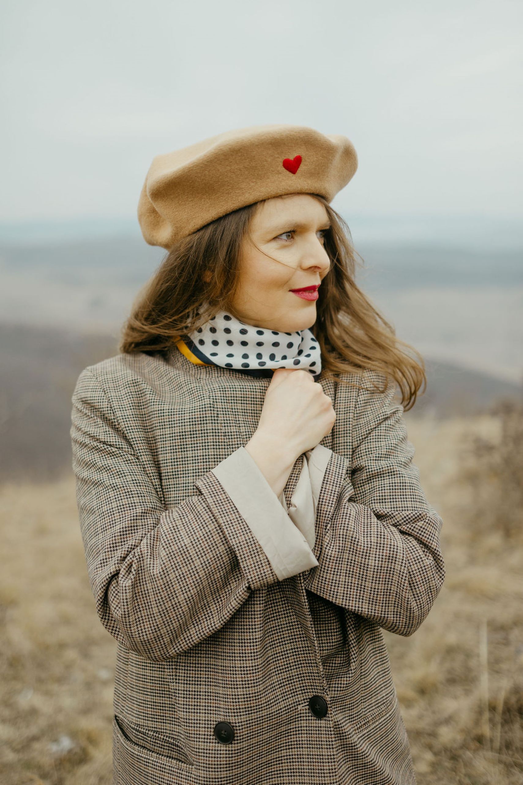Tips: The beret should be worn slightly tilted to one side for that effortlessly stylish look.