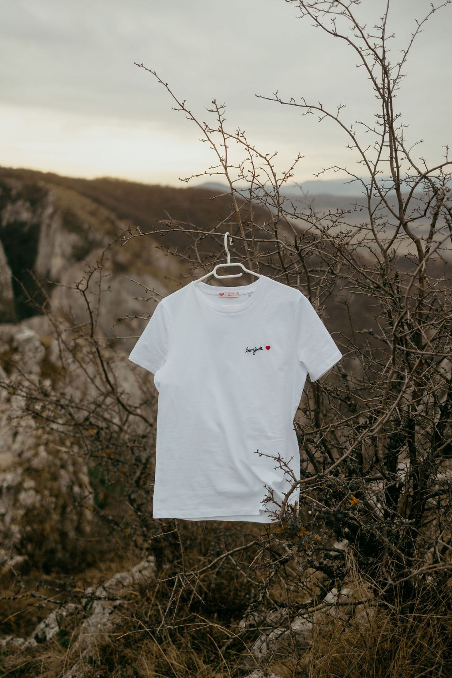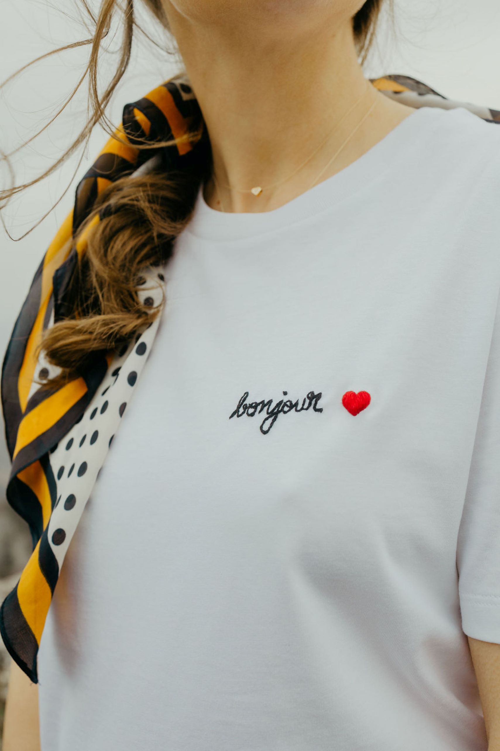 Tags: bonjour t-shirt, embroidered t-shirt, white t-shirt