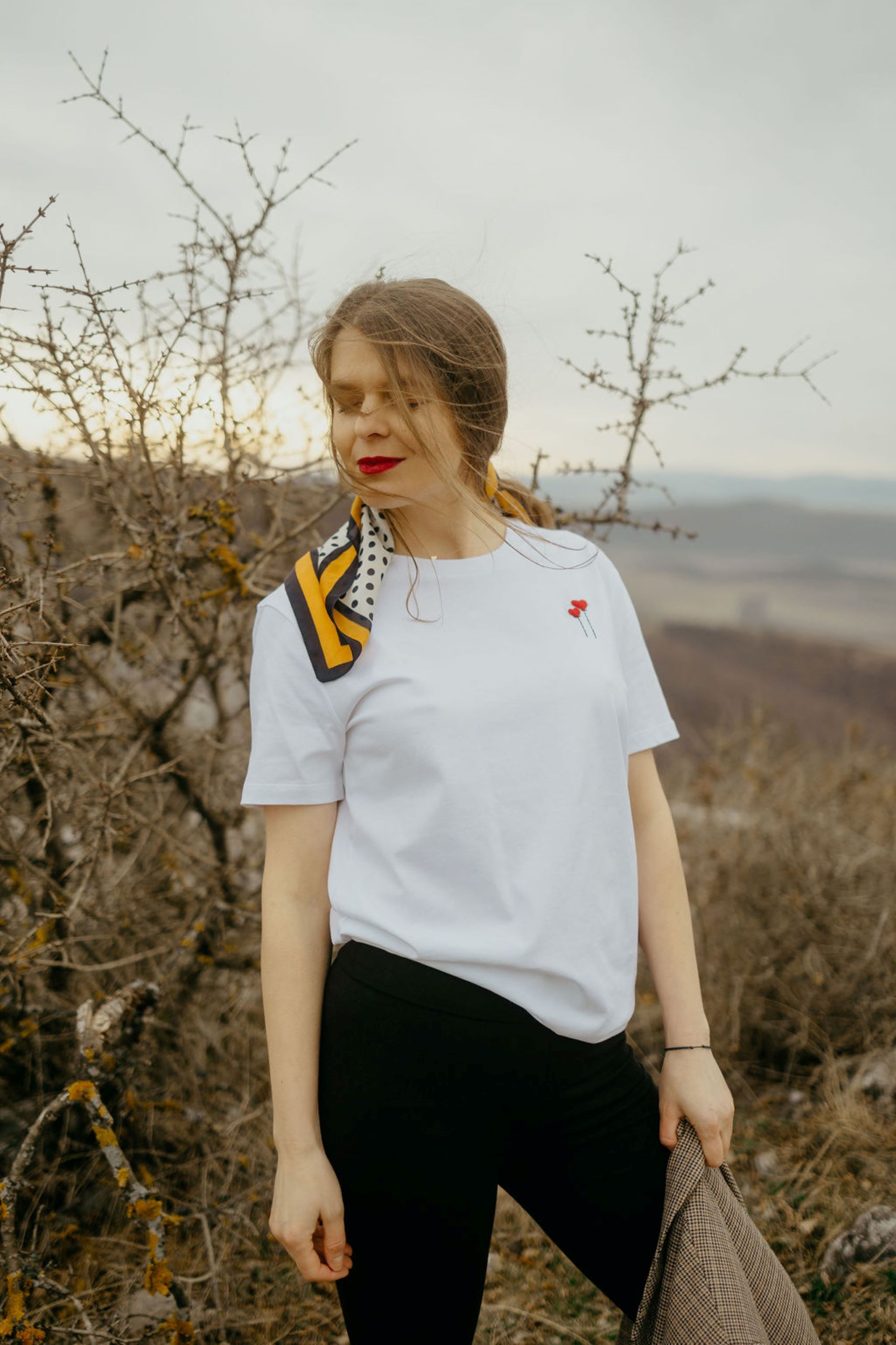 Tags: embroidered t-shirt, organic cotton t-shirt, white t-shirt