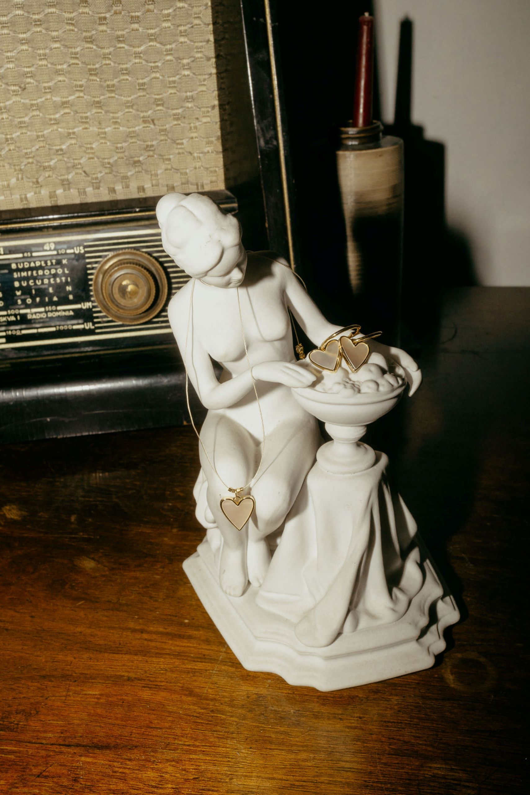 Material: 24 K Gold Plated Wire, Mother of Pearl heart pendant.